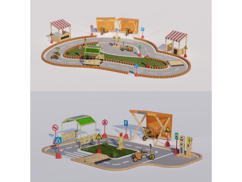 - Žaidimų nameliai, aikštelės, sūpynės iškylos stalai, baldai ir sensoriniai takeliai vaikams