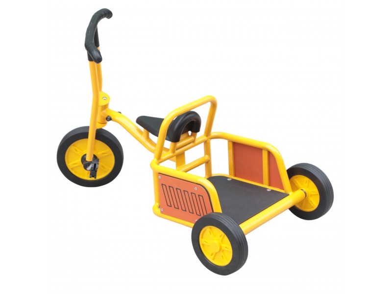 „Classic World“ triratukas-sunkvežimis – tai tobula transporto priemonė mažiesiems transporto ir statybų gerbėjams! Ryškios geltonos spalvos triratukas pasižymi tvirta metaline konstrukcija, užtikrinančia patvarumą ir saugumą net ir aktyviausių žaidimų metu. Patogi sėdynė, guminės vairo rankenos ir dideli, platūs ratai garantuoja stabilumą bei puikų sukibimą su danga. Gale esanti praktiška platforma-bagažinė leidžia vežtis mylimiausius žaislus ar kitus „krovinius“, taip skatinant vaiko kūrybiškumą ir vaizduotės žaidimus. Važiavimas šiuo triratuku yra puikus būdas lavinti judesių koordinaciją ir stiprinti bendrą fizinę būklę!
