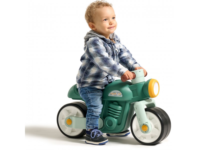 Pristatome naują, žavų „Falk“ balansinį motociklą, kuris sužavės kiekvieną mažylį savo išskirtiniu retro dizainu. Šis paspirtukas aprūpintas plačiais, tyliais ratais, kurie užtikrina stabilumą ir saugumą tiek namuose, tiek lauke. Speciali elastomerinė danga apsaugo motociklą nuo įbrėžimų ir pažeidimų, todėl jis ilgai atrodys kaip naujas. Tai puiki pirmoji transporto priemonė, padedanti vaikui lavinti pusiausvyrą ir motorinius įgūdžius, ruošiantis važiuoti dviračiu.