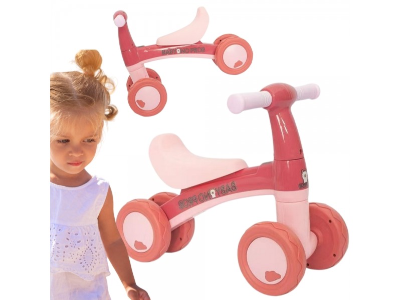 - Lengva, stabili konstrukcija ant 4 ratų – padidina vaiko saugumą mokantis važiuoti.