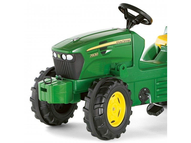 Šis žalias traktorius pagamintas iš aukštos kokybės plastiko, kurį labai lengva valyti. Dėl naudojamo grandininės pavaros mechanizmo, transporto priemonę lengvai suvaldys net ir mažas vaikas. Be to, visa mechaninė sistema yra uždara ir vaikui neprieinama, kas užtikrina maksimalų saugumą. Transporto priemonė pagaminta „Rolly Toys“ pagal amerikiečių kompanijos „Deere & Company“ licenciją.