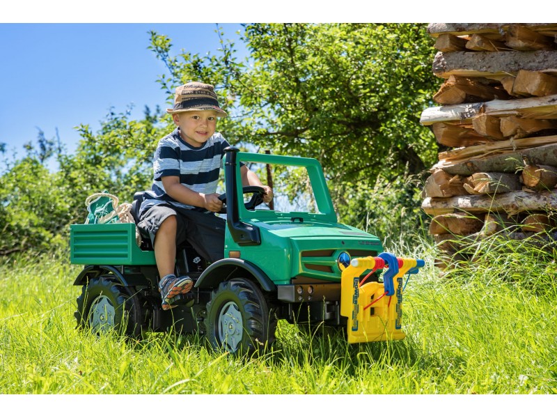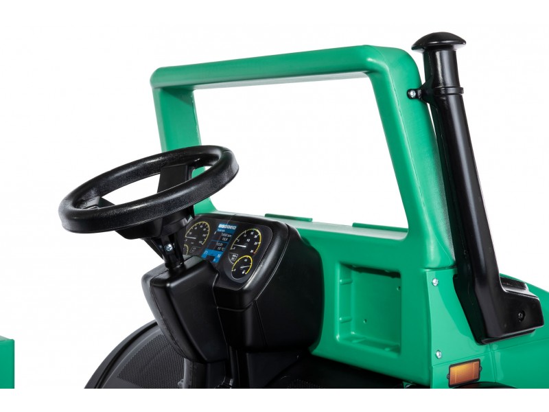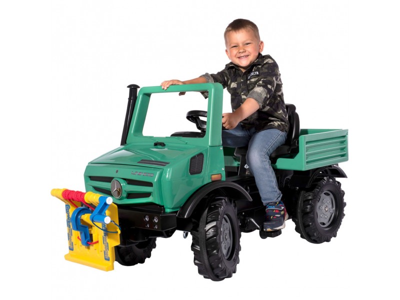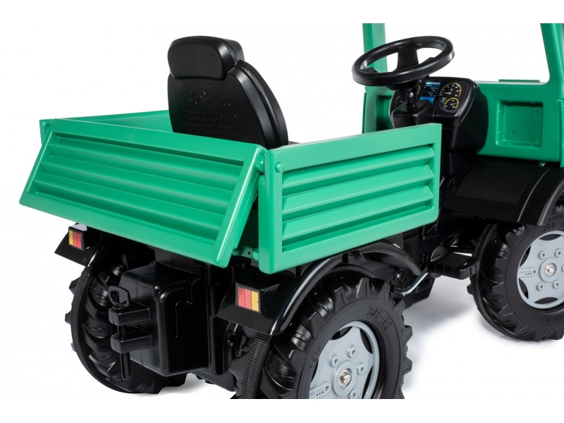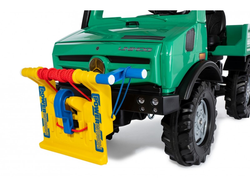 Žalias „Mercedes“ visureigis turi patogią, reguliuojamą sėdynę, kurios dėka automobilis auga kartu su vaiku. Be to, visa mechaninė sistema yra kruopščiai uždengta, todėl vaikas neturi prie jos prieigos, o tai garantuoja visišką saugumą žaidimo metu. Viena iš išskirtinių „RollyUnimog Forest“ savybių yra funkcinė gervė su rankena. Jos dėka mažieji tyrinėtojai gali žaisti miško darbų simuliacijas arba skubėti į pagalbą. Rankena leidžia vaikams traukti virvę ir kelti daiktus – tai puikus būdas lavinti smulkiąją motoriką. Tylios padangos užtikrina, kad žaislas naudojimo metu nekeltų nereikalingo triukšmo.