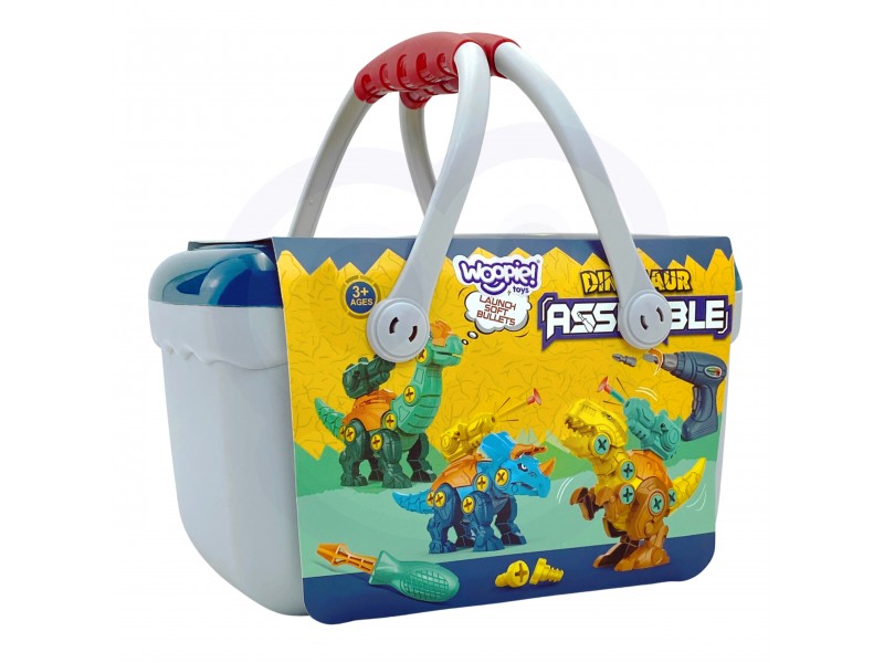 WOOPIE surenkami dinozaurai su gręžtuvu lagaminėlyje
