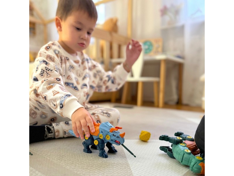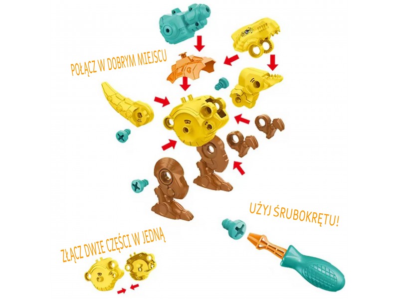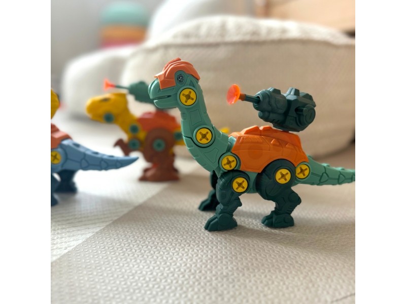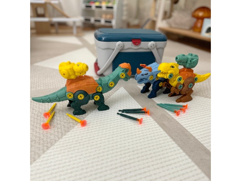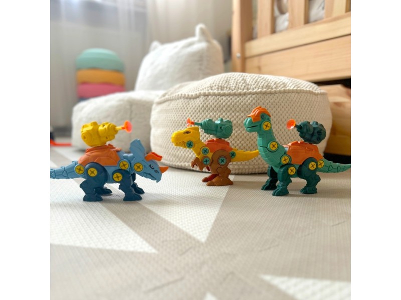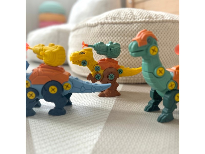 Žinomo prekių ženklo WOOPIE dinozaurų rinkinys – tai puikus pasirinkimas mažiesiems konstruktoriams, kuris nukels jūsų vaiką į fascinuojantį priešistorės pasaulį. Rinkinyje yra 3 savarankiškai surenkami dinozaurai, taip pat detalės, leidžiančios surinkti šiuos priešistorinius gyvūnus naudojant praktišką atsuktuvą arba vaikišką gręžtuvą su keičiamais antgaliais. Gręžtuvas gali suktis į abi puses, todėl detales galima lengvai ir patogiai prisukti bei atsukti. Surinkti dinozaurai turi judančias dalis: galvą, uodegą ir galūnes, o tai suteikia dar daugiau žaidimo galimybių. Šis lavinamasis rinkinys puikiai vysto vaiko rankų įgūdžius bei smulkiąją motoriką. Žaidimas, kurio metu vaikas renka ir konstruoja, leidžia pasijusti tikru meistru, o visų vaikų mėgstama dinozaurų tema daro jį dar patrauklesnį. Naudodamasis šiuo žaislu, vaikas lavins savo vaizduotę ir kūrybiškumą, atrasdamas priešistorės paslaptis.
