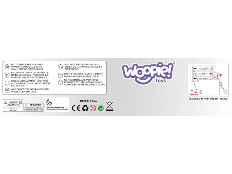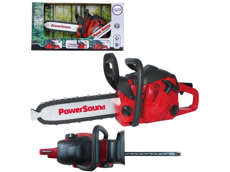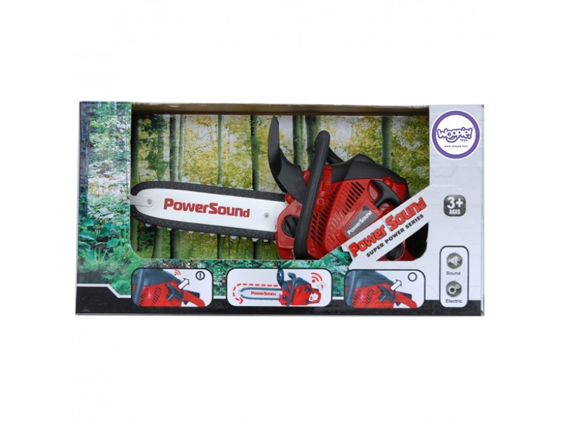 WOOPIE prekės ženklo žaislinis grandininis pjūklas yra 100% saugus vaikams. Besisukanti grandinė yra pagaminta iš gumos, todėl nėra rizikos, kad vaikas susižeis į kokį nors elementą. Šis pjūklas užvedamas kaip tikras! Norint įjungti žaislą, reikia patraukti užvedimo rankeną į viršų, tada paspausti viršutinį mygtuką ant rankenos ir galiausiai – apatinį mygtuką. Atlikus šiuos veiksmus, grandinė pradės suktis, o žaislas skleis tikroviškus variklio garsus. Tai puikus būdas lavinti vaiko vaizduotę ir leisti jam pasijusti suaugusiuoju, atliekančiu svarbius darbus.
