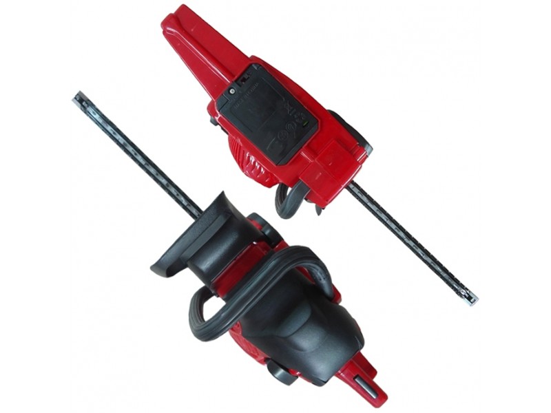- Realistinis veikimo mechanizmas: įjungus užvedimo rankena ir paspaudus mygtukus ant rankenos, grandinė pradeda suktis.