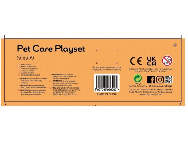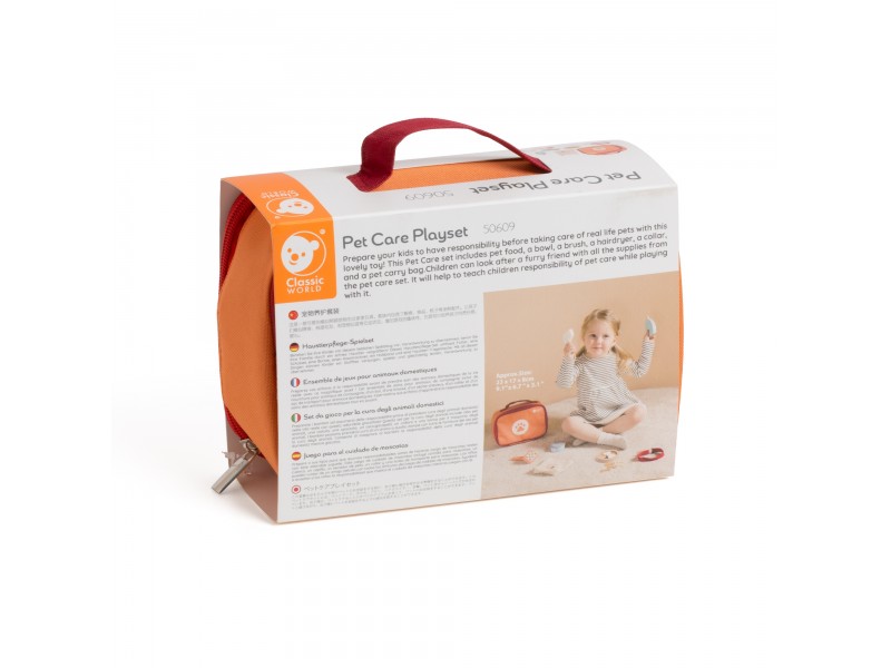 Ar jūsų vaikas svajoja apie augintinį? Classic World nešiojamas gyvūnų priežiūros rinkinys yra puikus būdas paruošti mažylį atsakingai augintinio globai! Šiame žaidimų rinkinyje rasite visus reikalingiausius priedus, kurie leis vaikui pasijusti tikru gyvūnų mylėtoju ir prižiūrėtoju. Žaidžiant su realistiškais aksesuarais, vaikai ne tik smagiai leis laiką, bet ir mokysis atsakomybės, empatijos bei rūpestingumo.