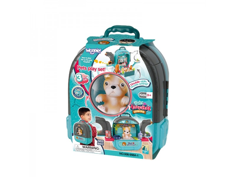 Woopie mažojo veterinaro rinkinys 3in1 – namelis kuprinėje su šuniuku
