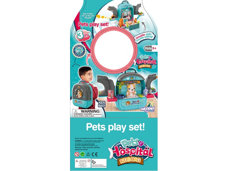 Žaislinis veterinaro rinkinys | 3in1 namelis kuprinėje su šuniuku | Woopie 650063
