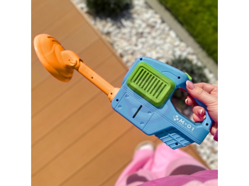 Žoliapjovės priedas yra nuimamas, o tai reiškia, kad akimirksniu jį galima paversti stilinga burbulų pūtimo mašina (pistoletu). Tikroji magija prasideda įjungus prietaisą. Anga, iš kurios sklinda burbulai, taip pat sukasi 360 laipsnių kampu. Šis judesys sukuria nuostabų efektą, sustiprindamas regimuosius potyrius ir priversdamas burbulus sklisti ore pačiomis netikėčiausiomis kryptimis.