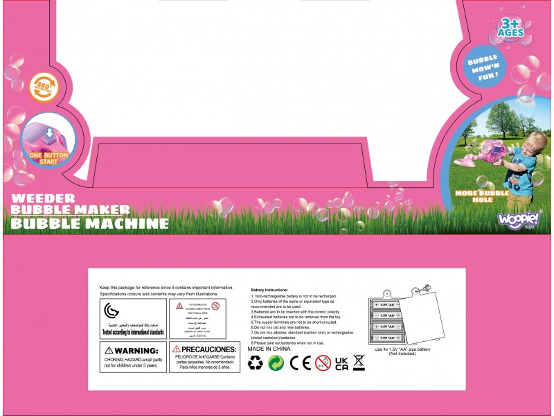 WOOPIE prekės ženklo muilo burbulų pistoletas - žoliapjovė yra nepaprastas prietaisas, kuris pakels žaidimus į visiškai naują lygį. Tai ne tik žaislas, bet ir tikra atrakcija, puikiai tinkanti bet kokiam vakarėliui, sode ar tiesiog leidžiant popietę gryname ore. Dėl naujoviško dizaino ir išskirtinių vizualinių efektų, jis neabejotinai taps mėgstamiausiu tiek vaikų, tiek suaugusiųjų įrenginiu, suteikiančiu daug džiaugsmo ir nepamirštamų akimirkų.