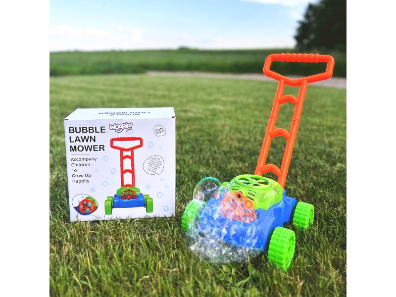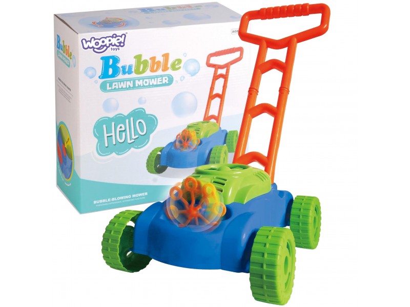 Nuostabi prekės ženklo WOOPIE vejapjovė, pučianti muilo burbulus, pavogs kiekvieno mažylio širdį. Žaislas imituoja garsus, kuriuos skleidžia tikra vejapjovė. Papildomai girdimi pučiamų burbulų garsai, o fone groja melodija. Pramogos gryname ore gali tapti dar įdomesnės ir patrauklesnės. Žaislinė vejapjovė ne tik išmokys vaiką rūpintis veja, bet ir pradžiugins pačius mažiausius bei sukels nuoširdžią šypseną dėl funkcijos pūsti nesuskaičiuojamą kiekį spalvotų muilo burbulų.