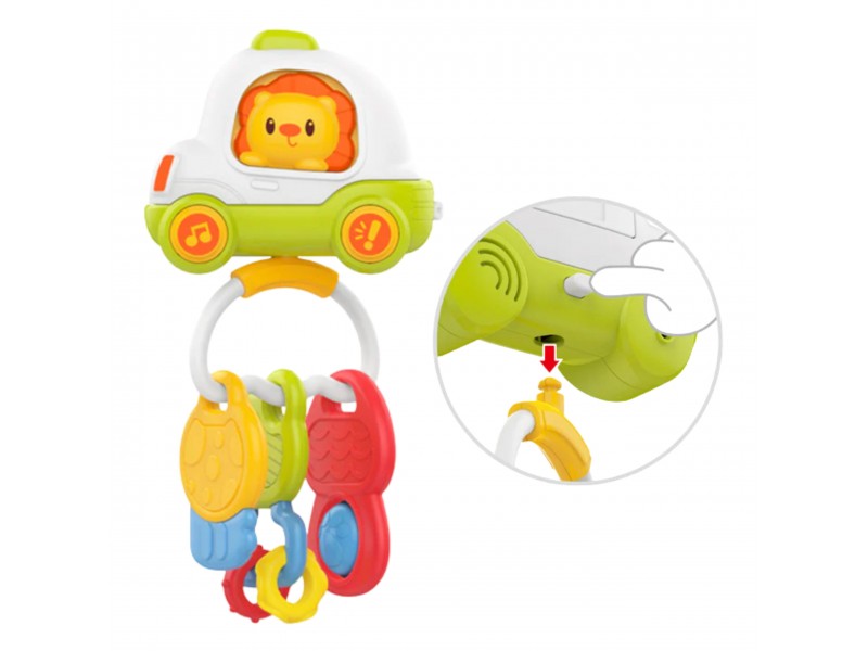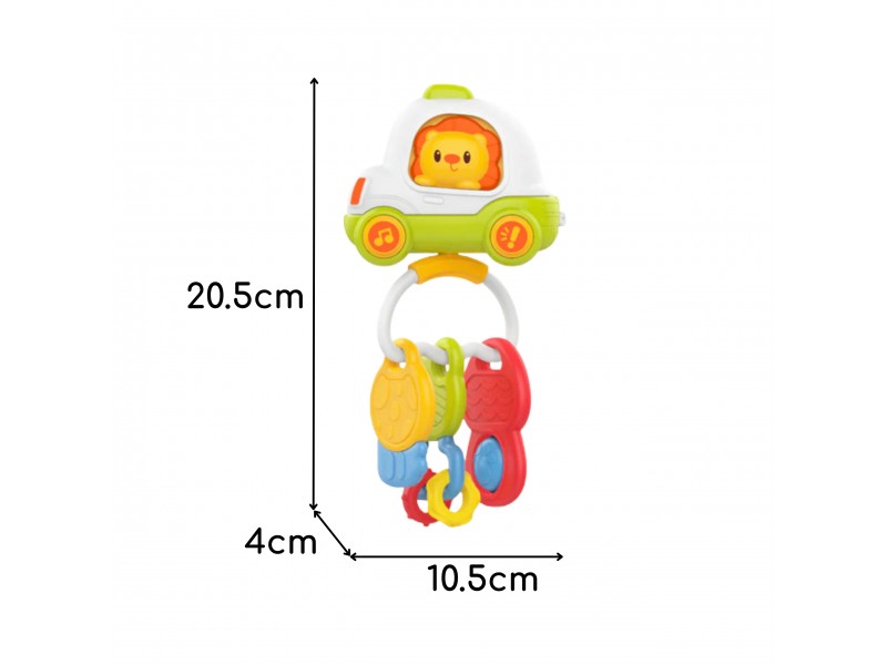 Šis spalvingas ir interaktyvus muzikinis žaislas, imituojantis automobilio pultelį su rakteliais, yra tobulas pasirinkimas kiekvienam mažyliui. Jis sukurtas specialiai tam, kad per smagų žaidimą skatintų vaiko motorinį, sensorinį ir pažintinį vystymąsi jau nuo pat mažens. Mielas liūtukas automobilyje patraukia vaiko dėmesį ir kviečia žaisti – spaudžiant mygtukus, mažylis aktyvuoja linksmas melodijas, realistiškus automobilio garsus ir šviesos efektus, kurie stimuliuoja pojūčius ir suteikia daug džiaugsmo. Žaislas turi įvairių elementų, tokių kaip minkštas kramtukas, besisukantys mygtukai, pakabukas ir rakteliai, kuriuos galima sukioti ir liesti. Tai padeda lavinti griebimo įgūdžius ir treniruoti rankyčių miklumą. Tai puikus kompanionas kasdieniams žaidimams namuose, kelionėse ar kaip pakabukas ant vežimėlio ar automobilinės kėdutės.