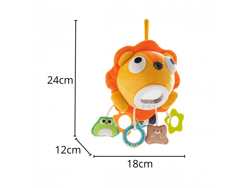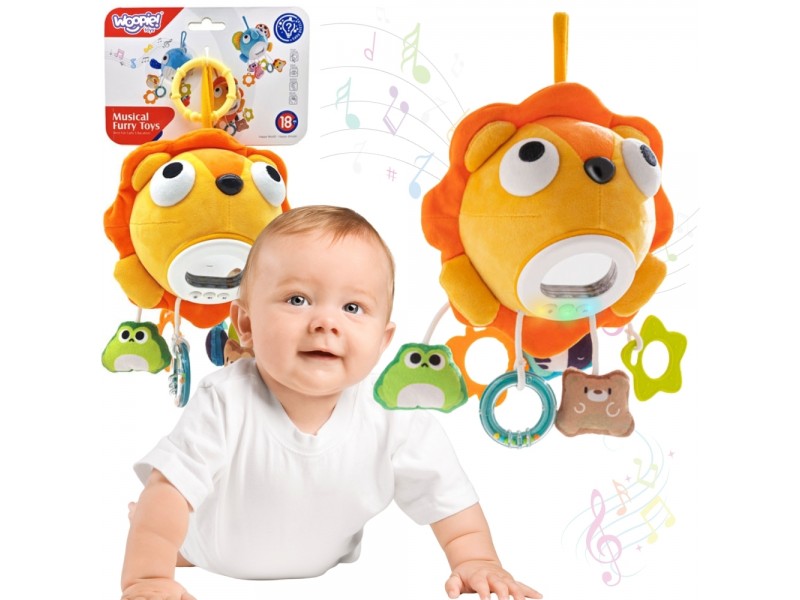 Šis žavus, muzikinis liūtukas iš Woopie taps nepakeičiamu jūsų mažylio miego ir žaidimų draugu. Švelnios melodijos, ramios švieselės ir skirtingų tekstūrų derinys ne tik suteiks vaikui saugumo jausmą, bet ir taps puikia priemone jo pojūčiams lavinti. Prie mielo liūtuko kūnelio pritvirtinti keturi skirtingi pakabukai: vienas jų – saugus kramtukas dygstantiems dantukams, o kiti – smagūs barškučiai, skatinantys smulkiąją motoriką ir sensorinį vystymąsi. Dėl patogaus laikiklio žaislą lengva pritvirtinti prie vaikiškos lovelės, vežimėlio ar automobilinės kėdutės, todėl mažylis galės džiaugtis ramybe ir pramogomis bet kurioje situacijoje.