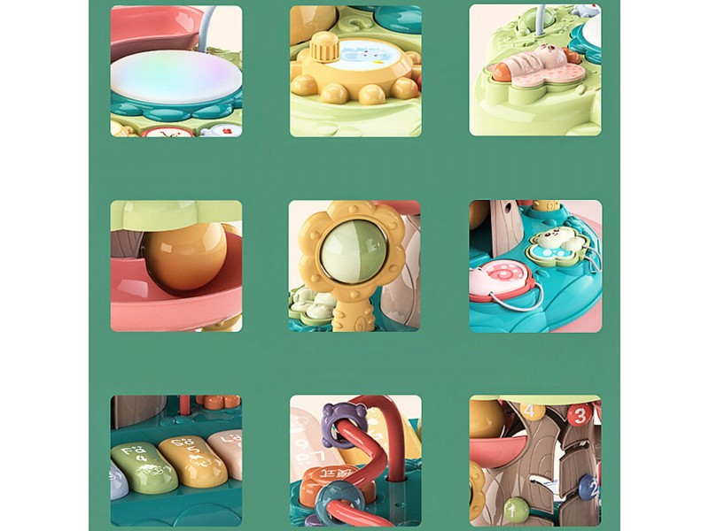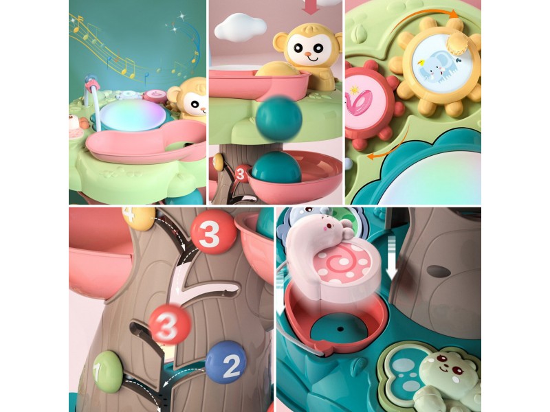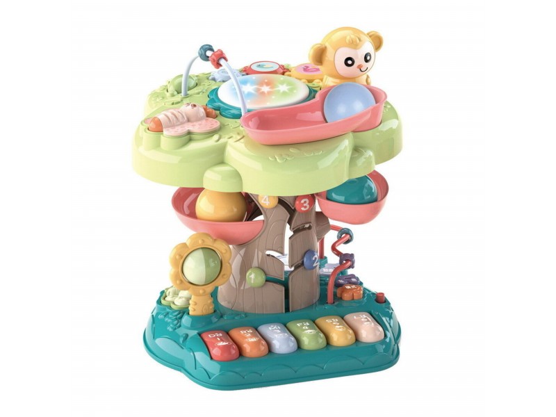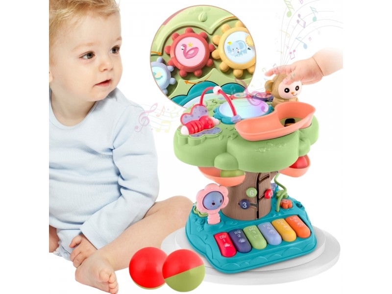 Pristatome išskirtinį, interaktyvų edukacinį medelį iš Woopie prekės ženklo, kuris neabejotinai taps mėgstamiausiu jūsų vaiko žaislu. Šis spalvingas veiklos centras apjungia muzikinius, sensorinius ir loginius elementus, skatindamas smulkiosios motorikos, akių ir rankų koordinacijos bei ankstyvųjų pažintinių įgūdžių vystymąsi. Dėl 14 skirtingų funkcijų žaislas suteikia ilgalaikę pramogą ir skatina mokytis per aktyvų žaidimą. Medelis turi daugybę interaktyvių elementų – nuo grojančio pianino ir šviečiančio būgnelio iki kamuoliukų trasos, beždžionėlės, paleidžiančios kamuoliukus, ir spalvingų skaičiavimo karoliukų. Funkcijų ir judančių dalių gausa yra didžiulė, o jų atradimas suteiks jūsų vaikui begalę džiaugsmo.