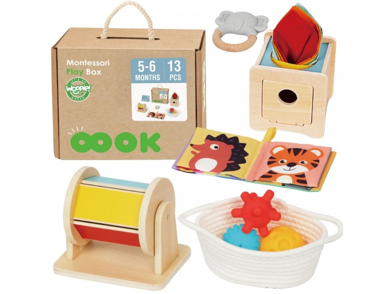 „Woopie“ lavinamasis rinkinys yra visapusiškas komplektas, sukurtas siekiant užtikrinti sveiką jūsų mažylio psichomotorinį vystymąsi. Tai idealus rinkinys kūdikiams nuo 5 iki 6 mėnesių amžiaus, kuriame rasite 5 jutiminius ir lavinamuosius žaislus, įkvėptus Montessori ugdymo metodo. Šie žaislai stimuliuoja pagrindinius pojūčius: regėjimą, lytėjimą ir klausą, taip pat lavina rankų bei akių koordinaciją ir loginį mąstymą. Prie rinkinio pridedamas išsamus vadovas tėvams, kuriame patariama, kada ir kaip pristatyti kiekvieną žaislą, todėl ši dėžutė yra tobula dovana kūdikiui.