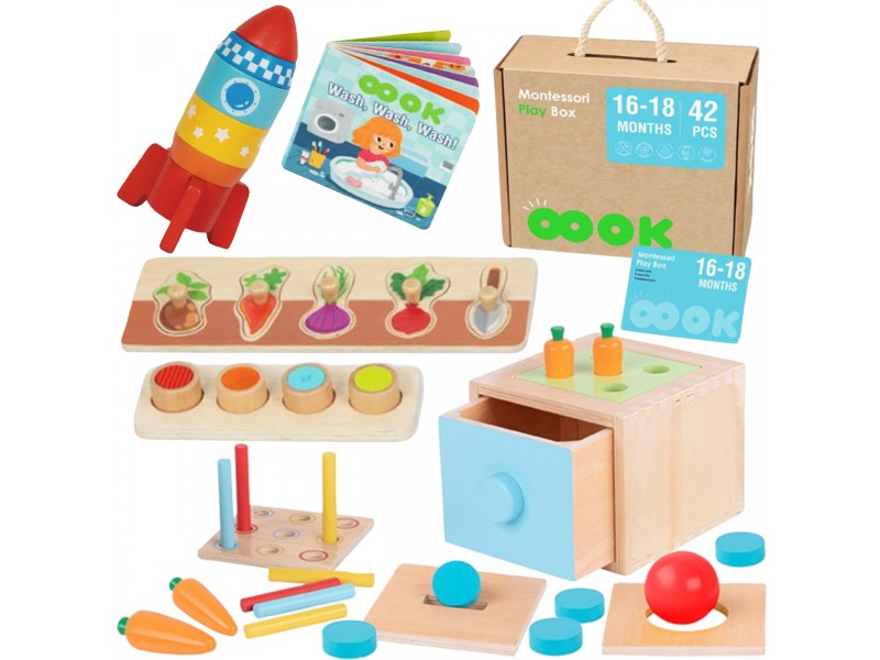Lavinamasis Montessori rinkinys iš „Tooky Toy“ – tai puikus komplektas, apjungiantis įvairius medinius sensorinius žaislus, kurie suteiks jūsų vaikui daugybę valandų įtraukiančios ir ugdančios veiklos. Montessori žaislai skatina savarankišką aplinkos tyrinėjimą ir stimuliuoja pažintinius gebėjimus. Sensoriniai žaislai – tai veiklos, kurios įtraukia pojūčius ir padeda lavinti pažintinius, emocinius bei motorinius įgūdžius.