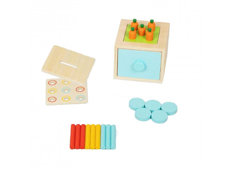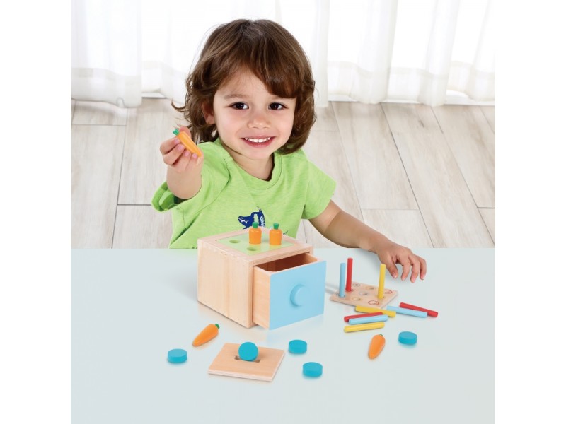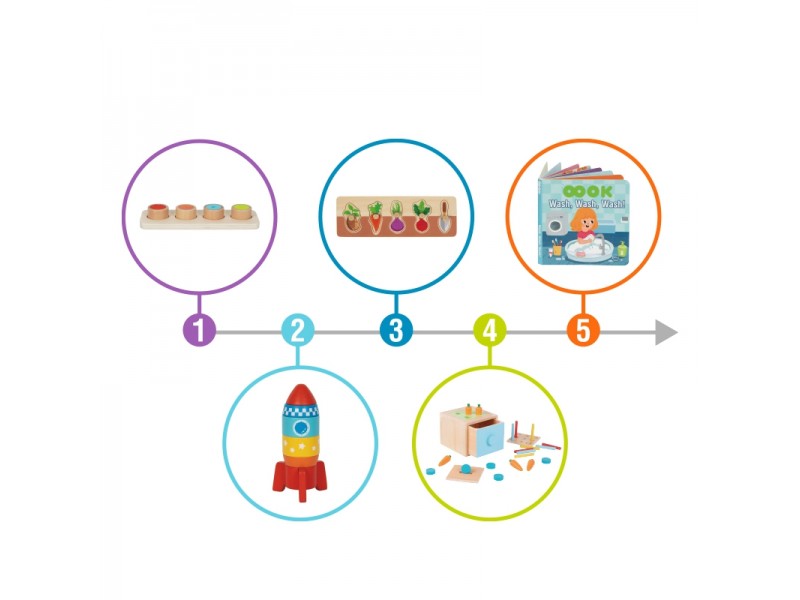 Šis lavinamasis rinkinys padeda vaikams lavinti motorinius įgūdžius, rankų-akių koordinaciją, spalvų atpažinimą, kritinį mąstymą ir problemų sprendimo įgūdžius. Jis taip pat padeda mažyliui atrasti pasaulį liečiant įvairius daiktus ir stebint savo veiksmų rezultatus. Žaislas turi kelis lygius: