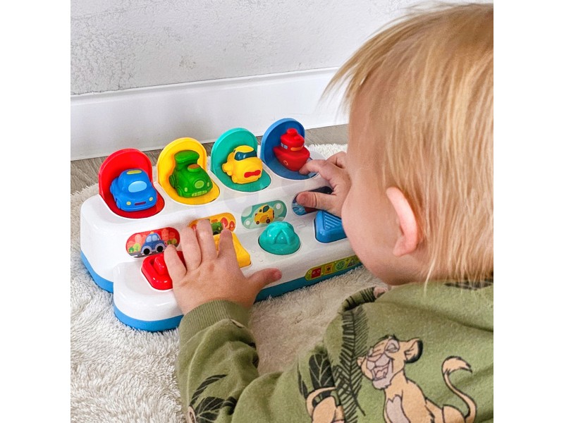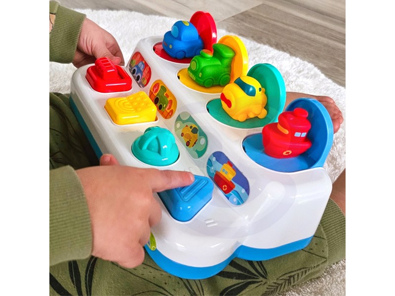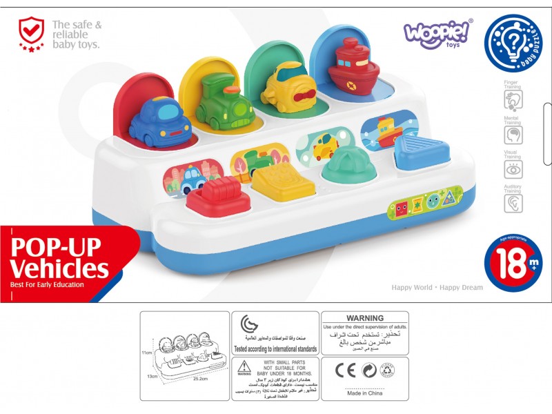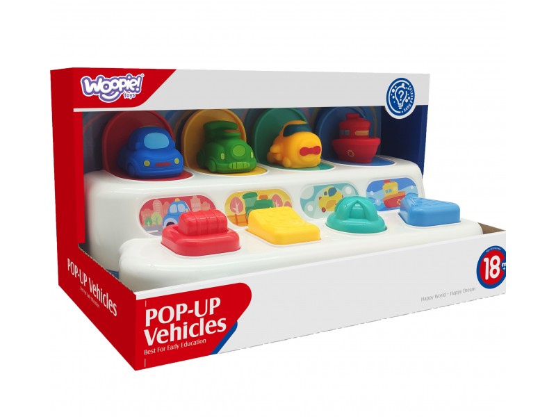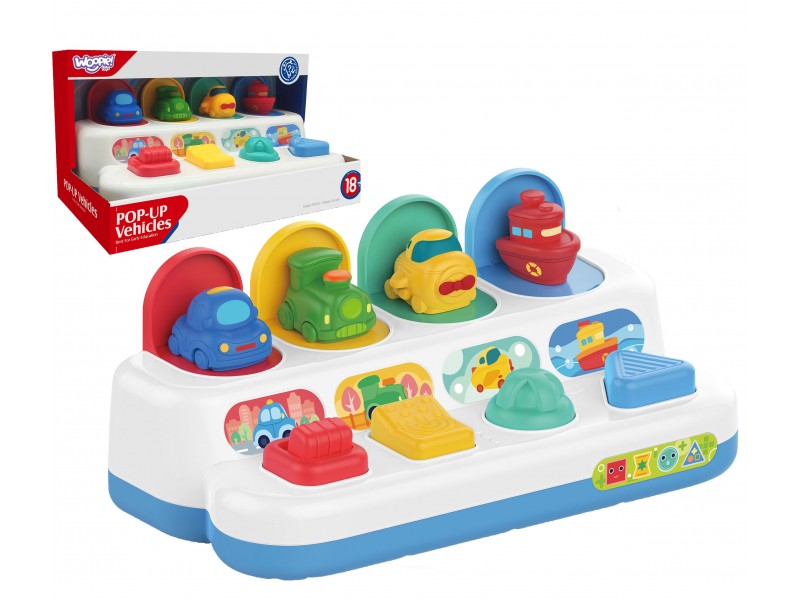 Prekės ženklo Woopie „Iššokančios transporto priemonės“ yra neabejotinas mokslo ir pramogų derinys mažiesiems tyrinėtojams. Kai aktyvuojamas jungiklis, pasukama rankenėlė ar paspaudžiami mygtukai, iš slėptuvės staiga iššoka transporto priemonė! Šis interaktyvus „pop-up“ tipo žaislas yra kokybiškai pagamintas, itin patvarus ir sunkiai sugadinamas. Tai puiki dovana įvairioms progoms, kuri ne tik suteikia daug džiaugsmo, bet ir padeda lavinti motorinius įgūdžius bei suprasti priežasties ir pasekmės ryšį.