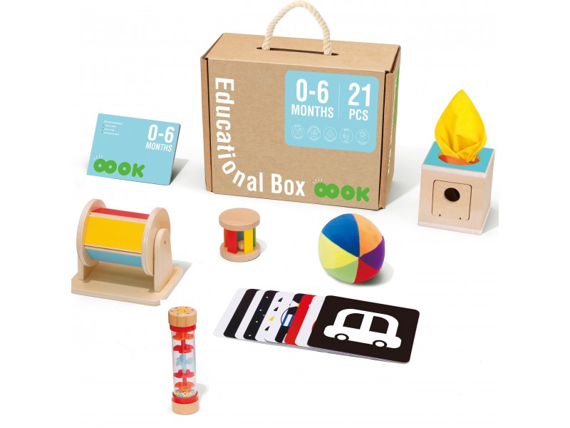Tooky Toy siūlo edukacinį Montessori žaislų rinkinį. Šis lavinamasis rinkinys skirtas kūdikiams nuo 0 iki 6 mėnesių. Dėžutėje rasite 6 skirtingus lavinamuosius žaislus, kurie tikrai sudomins jūsų mažylį. Toks rinkinys yra puikus būdas lavinti kūdikių pažintinius, emocinius ir motorinius įgūdžius! Prie rinkinio pridedama naudojimo instrukcija, kurioje pateikiama informacija apie dėžutės turinį bei žaislų naudojimo patarimai.