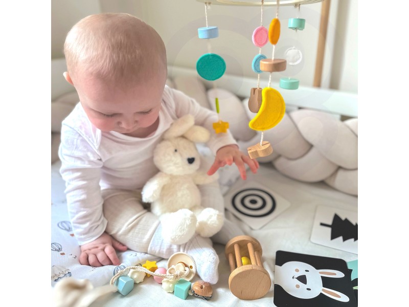 Švelniai besisukantys zuikučiai padeda kūdikiui nusiraminti ir lengviau užmigti. Judančių elementų stebėjimas lavina regimąjį suvokimą, moko koncentruoti dėmesį ir suprasti priežasties-pasekmės ryšį. Tai ne tik lavinamasis žaislas, bet ir estetiška vaiko kambario dekoracija.
