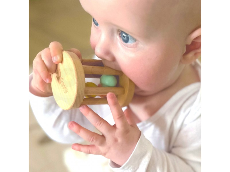 Saugus medinis barškutis su spalvotais kamuoliukais viduje. Kūdikiui purtant žaislą, jis pradeda suprasti ryšį tarp judesio ir garso. Tai lavina smulkiąją motoriką, rankų-akių koordinaciją, gebėjimą suimti ir skatina kūrybiškumą.