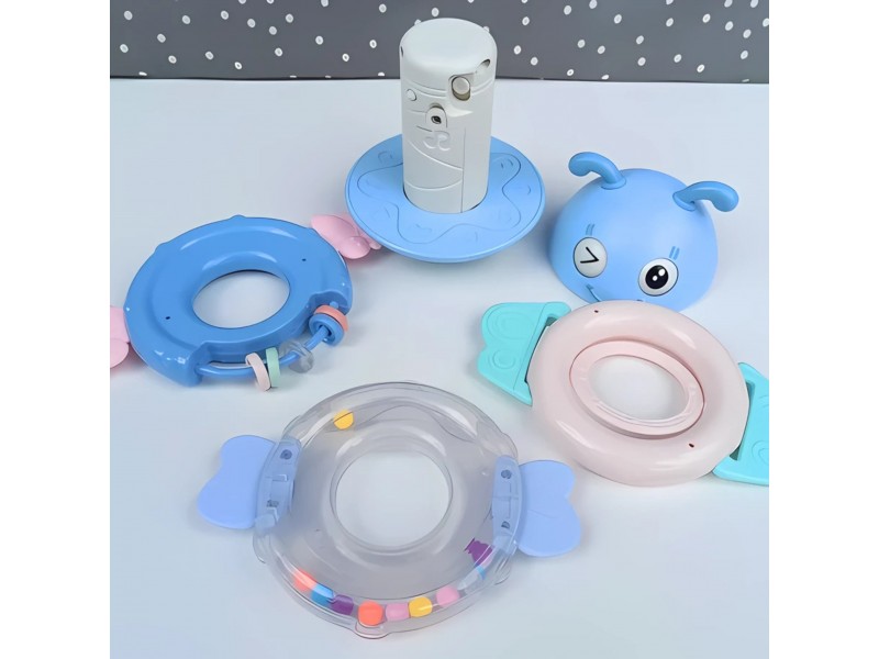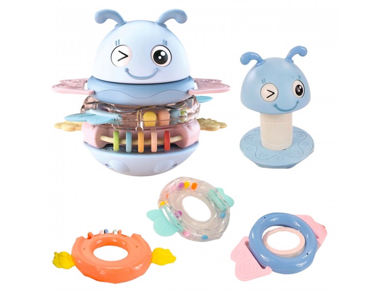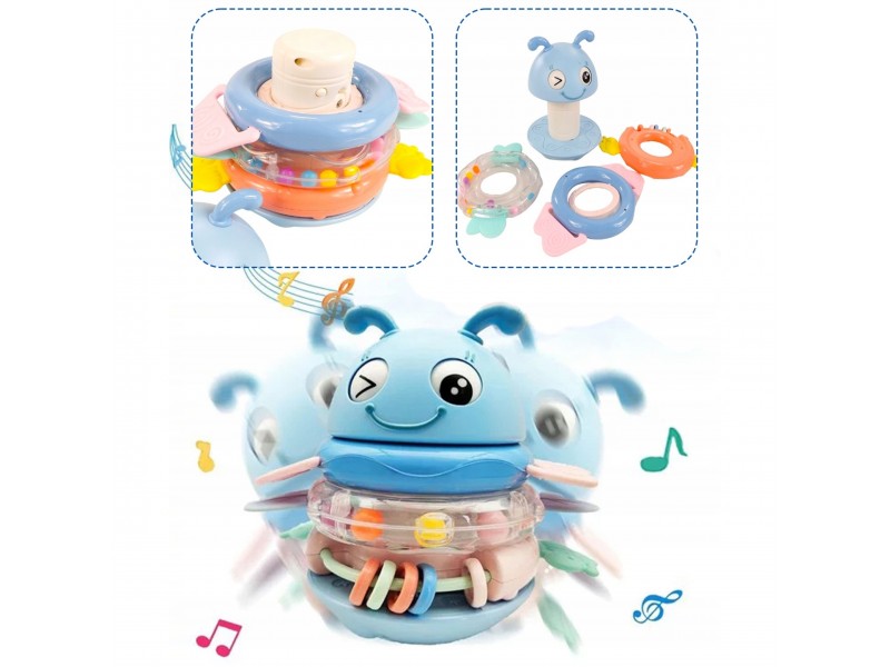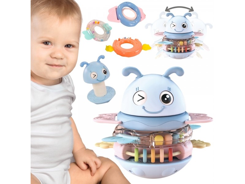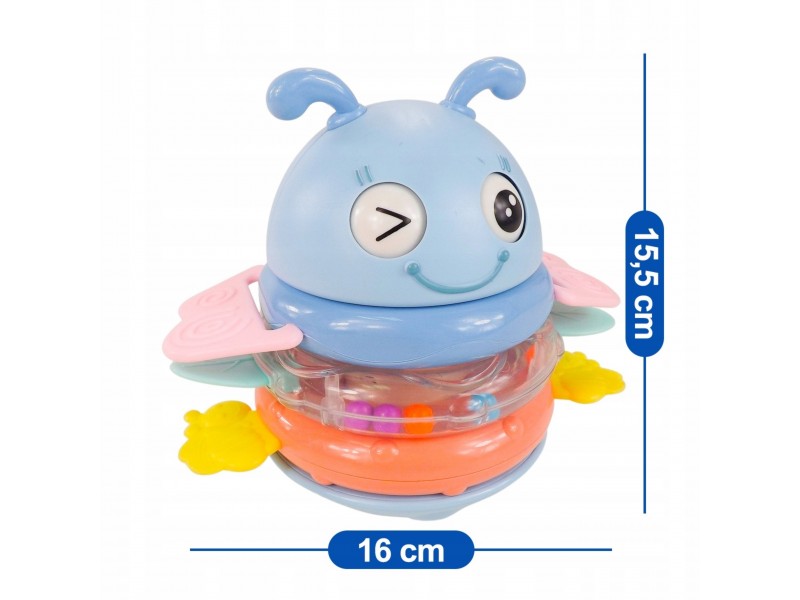 „Mėlynoji bitutė“ 2-in-1, sukurtas WOOPIE, yra universalus sensorinis žaislas, stebinantis savo funkcionalumu ir patrauklia išvaizda! Jis apjungia barškučio, kramtuko funkcijas ir garso efektus, užtikrindamas visapusišką mažylio lavinimą ir pramogą jau nuo pirmųjų gyvenimo mėnesių. Trys spalvingi žiedai, kurie yra ir barškučiai, ir kramtukai, gali būti maunami ant specialaus kuoliuko. Priklausomai nuo pasirinkto režimo, užmovus žiedą pasigirs dainelė arba linksmas garsas. Žaislo viršūnę puošia miela bitutės galvutė su judančiomis akytėmis, kuri iškart patraukia vaiko dėmesį. Šis žaislas sukurtas galvojant apie pačius mažiausius. Ant žiedų esantys švelnūs silikoniniai iškilimai puikiai tinka kaip kramtukai dygstant dantukams, o saugios, užapvalintos formos leidžia vaikui lengvai suimti ir manipuliuoti žaislu. Visos dalys yra spalvingos, skirtingų tekstūrų ir tinkamo dydžio, kad stimuliuotų vaiko pojūčius, smalsumą ir motorinius įgūdžius. Dėl apvalaus pagrindo žaislas švelniai siūbuoja judinamas, todėl jį apversti visai nėra lengva! Tai ne tik žaislas, bet ir kasdienis vaiko mokymosi bei tobulėjimo palydovas.