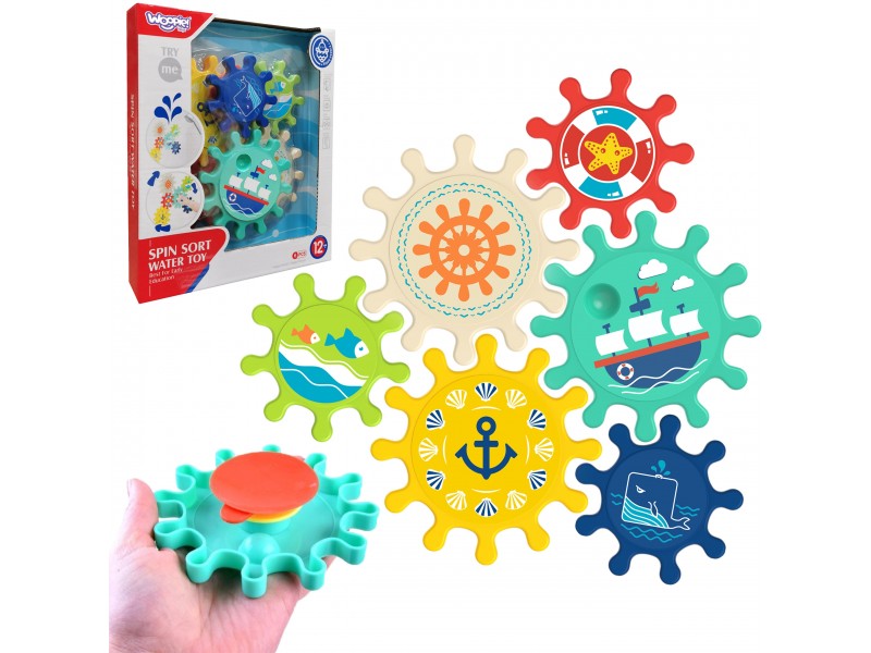 Spalvoti krumpliaračiai iš prekės ženklo Woopie yra žaislas, kuris padarys maudynes daug smagesnes kiekvienam vaikui. Rinkinį sudaro 6 spalvoti krumpliaračiai dviejų skirtingų dydžių. Kiekvienas krumpliaratis turi siurbtukus, kurie leidžia lengvai pritvirtinti jį prie plytelių, vonios ar dušo kabinos sienelės taip, kad elementai susijungtų dantukais. Žaisdamas vaikas, pasukęs vieną elementą, išjudina visą savo sukurtą konstrukciją. Mažylis žaisdamas susipažįsta su priežasties ir pasekmės principu, lavina pojūčius, o spalvinga jūrinė grafika paskatins žaisti ir paįvairins pramogas duše ar vonioje.