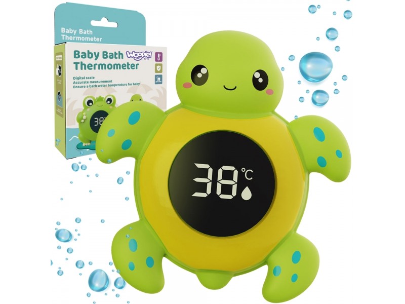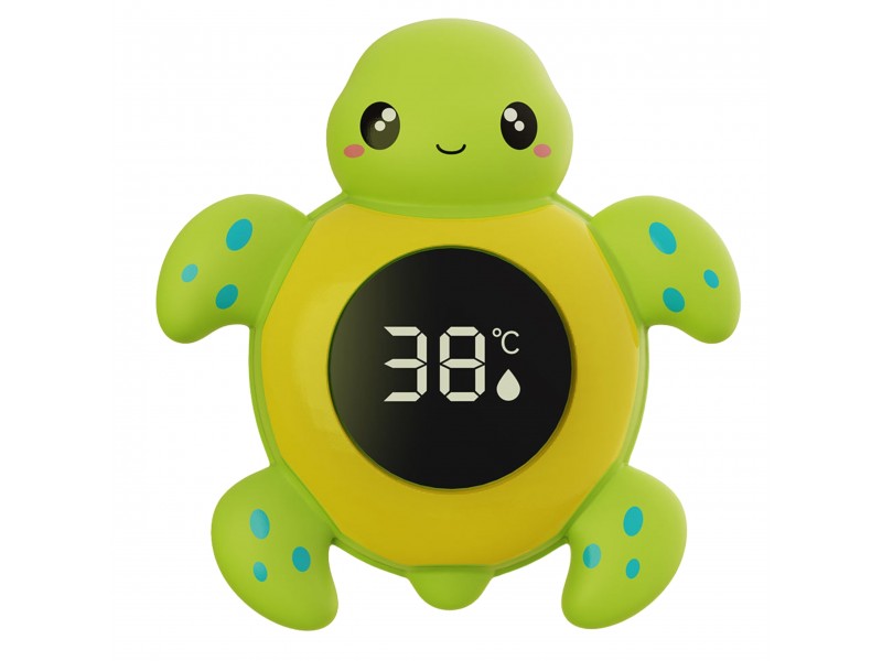 Pasirūpinkite savo vaiko saugumu ir komfortu kiekvienų maudynių metu! Šis žavus vėžliuko formos termometras pavers temperatūros matavimą smagia pramoga mažyliui. Prietaisas idealiai tinka naudoti tiek vonioje ar baseine, tiek vaiko kambario oro temperatūrai matuoti. Termometras turi aiškų skaitmeninį ekraną ir išmanią spalvinę funkciją, kuri įspėja apie vandens temperatūros lygį, užtikrinant maksimalų saugumą.