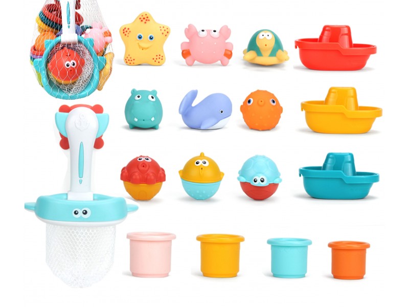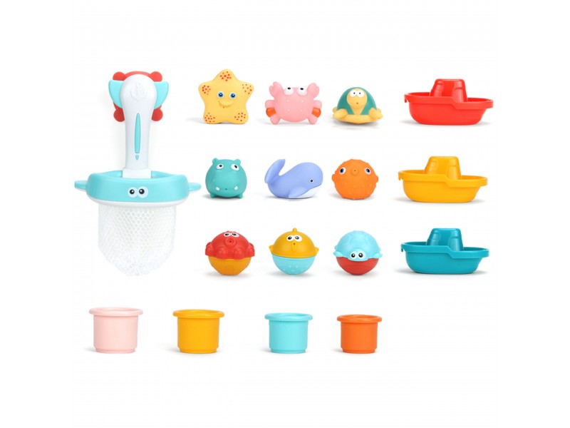 WOOPIE prekės ženklo vandens žaislų rinkinys bus puikus priedas Jūsų vaiko maudynėms. Šį universalų rinkinį galima naudoti tiek maudantis vonioje, tiek žaidžiant lauke su smėliu. Rinkinyje rasite viską, ko reikia linksmoms pramogoms: žvejybos tinklelį, 3 laivelius, 4 puidelius (kuriuos galima sudėti vieną į kitą) bei 9 formeles arba pilstymo puodelius – priklausomai nuo to, ar žaidžiama vandenyje, ar smėlio dėžėje.
