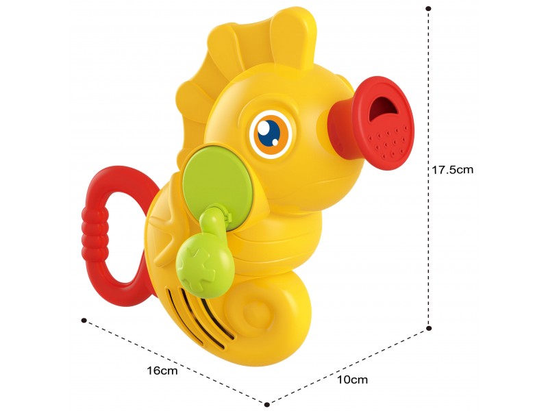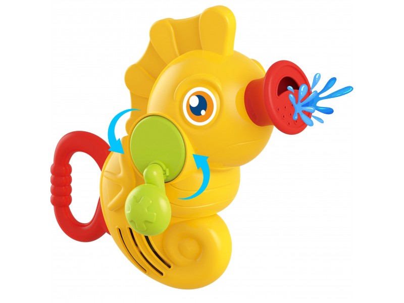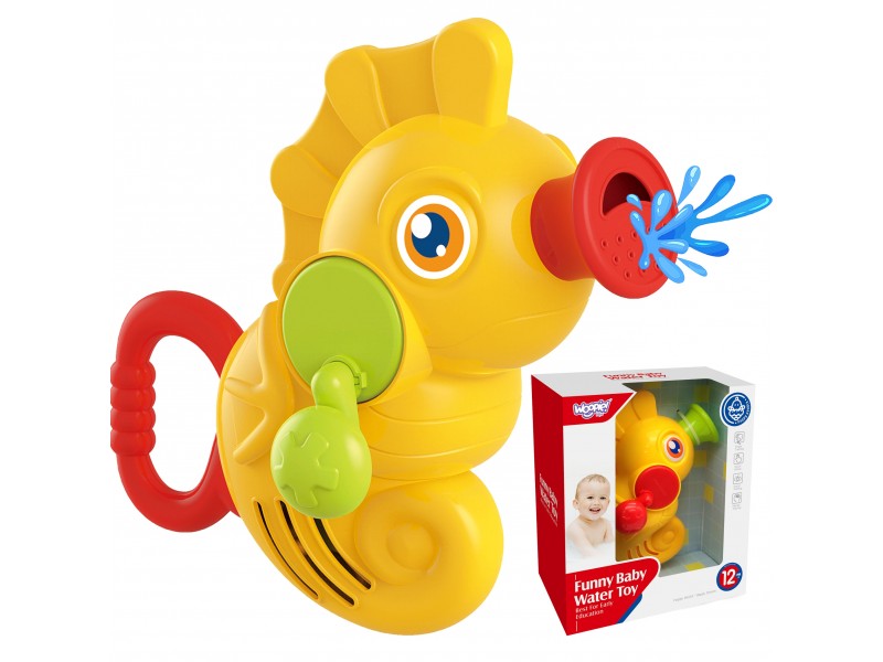 WOOPIE prekės ženklo vonios žaislas – vandens pompa „Jūrų arkliukas“ – paskatins vaikus maudytis ir paįvairins laiką vonioje. Norint pradėti žaidimą, tereikia panardinti žaislo apatinę dalį į vandenį, o tada pasukti rankenėlę, kad iš jūrų arkliuko burnos ištrykštų vandens srovė. Žaislas sukurtas ilgalaikiam naudojimui ir jam nereikia baterijų. Ryškios spalvos pritrauks vaiko dėmesį, o smagi funkcija sudomins ilgam. Naudojimasis žaislu lavina mažųjų rankų miklumą, skatina vaizduotę, o žaidimas su vandeniu lavina vaiko pojūčius.