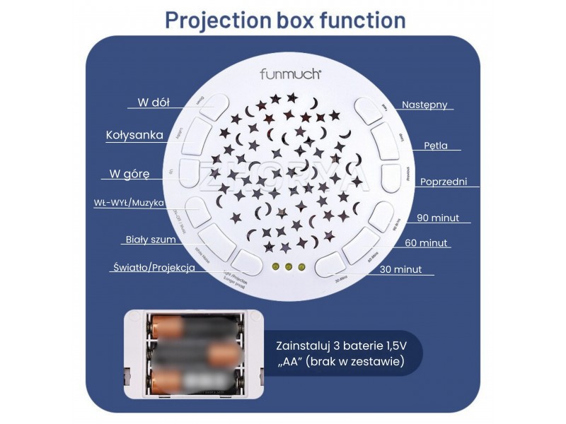 - Šviesos projektoriaus funkcija (žvaigždės ir mėnuliai).