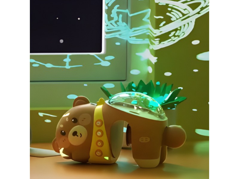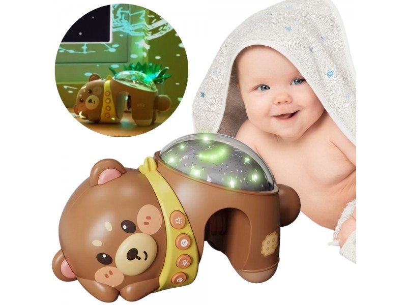 Meškiukas skleidžia švelnias, besikeičiančias šviesas, kurios ant lubų sukuria nuostabią, žvaigždėtą erdvę. Tuo tarpu švelnios melodijos ir raminantys garsai padeda vaikui atsipalaiduoti ir palaiko natūralų užmigimo procesą. Dėl apvalios formos, draugiškos išvaizdos ir saugių medžiagų šis žaislas yra ne tik funkcionalus, bet ir kupinas šilumos. Dėl įgaubtos formos projektorių galima pritvirtinti prie lovytės turėklų arba tiesiog padėti ant lygaus paviršiaus.