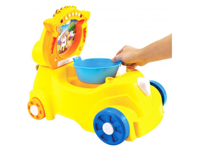 Jūs pasirenkate, kaip naudoti kompaktišką įstatomą talpyklą. Žaislas siūlo praktiško naktipuodžio funkciją, kurį galima lengvai išimti. Garso ir šviesos efektai padeda vaikui jaustis patogiau, o mokymosi procesą paverčia maloniu. Praktiška talpykla taip pat gali veikti kaip daugiafunkcinė slėptuvė žaislams. Tiesiog pakelkite sėdynę į viršų, sudėkite ten reikalingus aksesuarus ir galima leistis į nuotykius!
