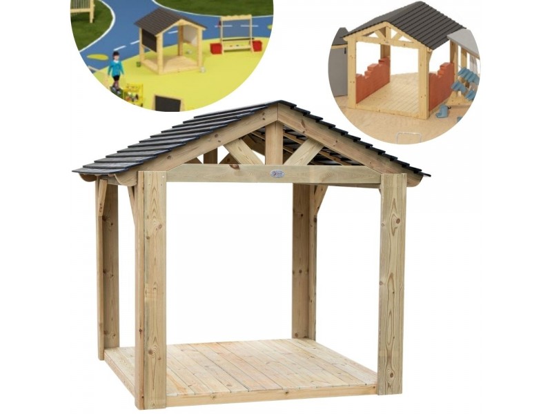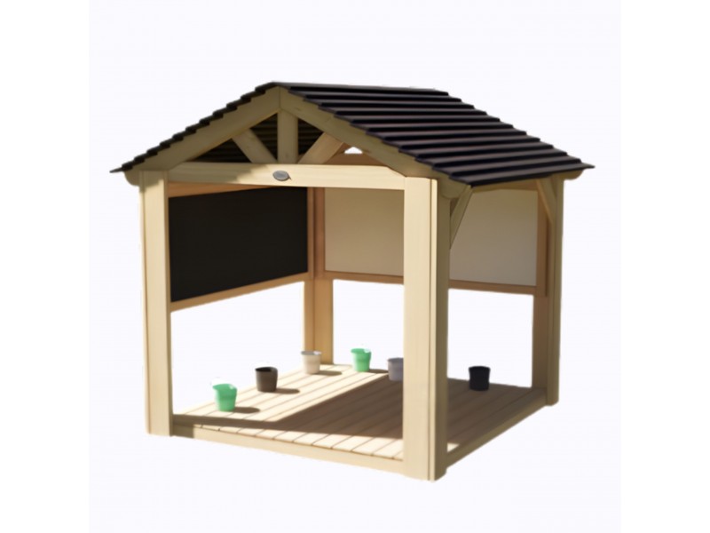 „Classic World“ medinė pavėsinė-namelis – tai tvirta ir erdvi konstrukcija, kuri taps nepakeičiama jūsų sodo, terasos ar ugdymo įstaigos žaidimų aikštelės dalimi. Sukurtas specialiai tam, kad įkvėptų vaikus kūrybiškiems ir meniniams žaidimams gryname ore. Namelis turi patvarias medines grindis ir stogą su čerpių imitacija, kuris suteikia malonų pavėsį ir apsaugo nuo saulės ar netikėto lietaus. Šis statinys, dar vadinamas „lauko meno nameliu“, gali tapti nuostabia menininko studija po atviru dangumi ar teminių žaidimų centru. Tvirta konstrukcija ir natūralios medžiagos garantuoja saugumą ir ilgaamžiškumą, o atviras dizainas leidžia patogiai stebėti vaikus ir skatina bendrus žaidimus. Tai tobula vieta laisvai lietis vaikų fantazijai!