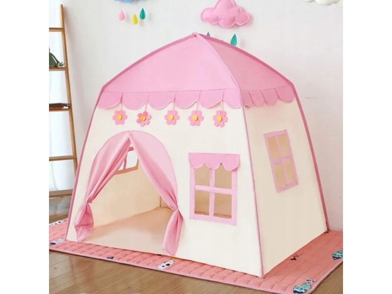 - Švelnaus rožinio atspalvio namelio formos palapinė puikiai derės bet kurios mergaitės kambario interjere.