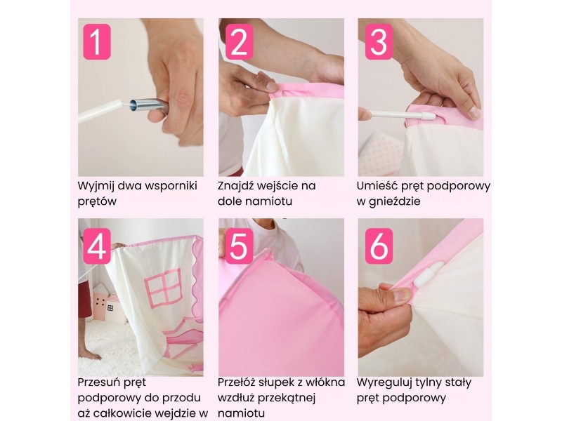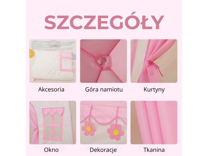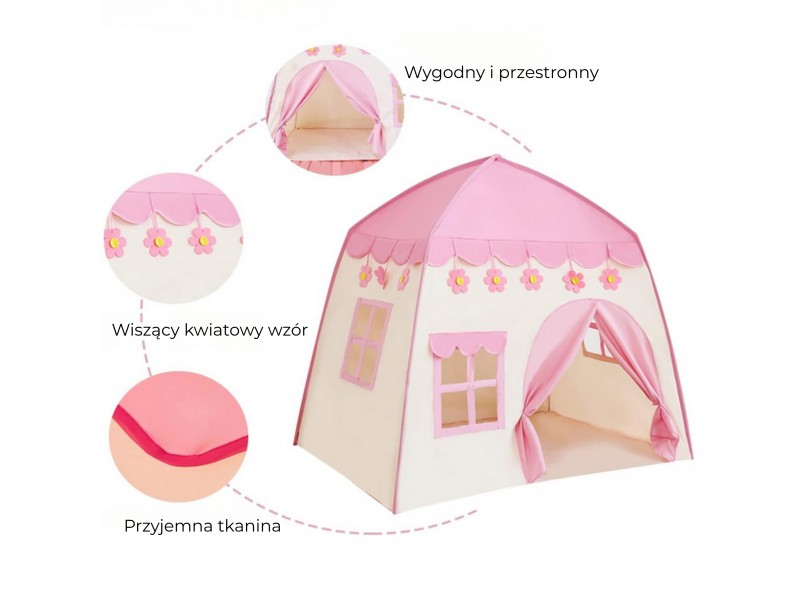 Ši žavinga „Woopie“ rožinė palapinė-namelis yra tobula vieta, kur jūsų vaikas galės pasinerti į pasakiškų nuotykių pasaulį, kurti fantastiškas istorijas ir žaisti tarsi karališkoje pilyje. Kruopščiai sukurta, atsižvelgiant į smulkiausias detales, ši erdvi palapinė taps kiekvieno vaiko kambario puošmena ir mėgstamiausia žaidimų vieta.