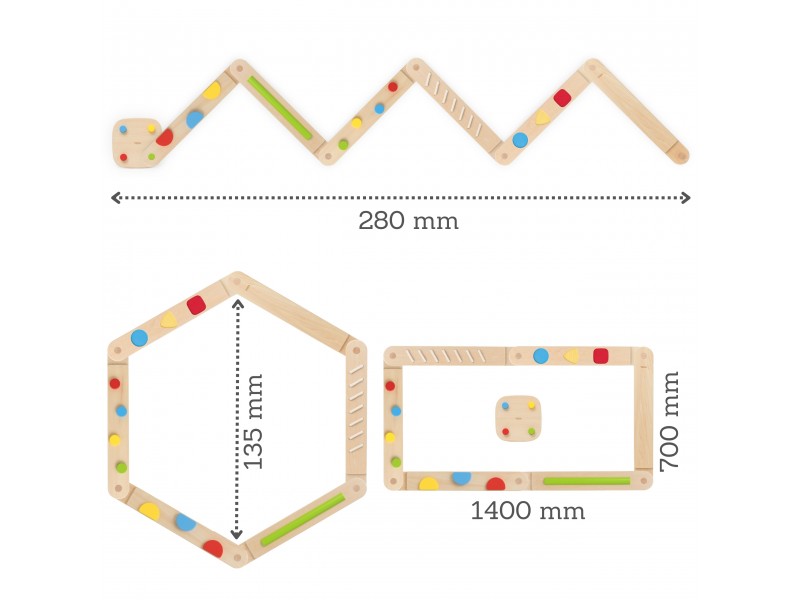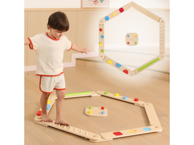 Skatinkite vaiko pojūčių pasaulio pažinimą su šiuo inovatyviu Viga sensorinių balansavimo sijų rinkiniu. Šis išskirtinis žaislas, sudarytas iš 6 medinių sijų ir 1 jungties, leidžia mažyliui laisvai konstruoti unikalias pusiausvyros trasas bei takelius. Kiekviena sija pasižymi skirtingomis kliūtimis, kurios suteikia įvairiapusišką taktilinę stimuliaciją ir padeda lavinti vaiko koordinaciją, kūrybiškumą bei pasitikėjimą savimi. Rinkinyje esančios sijos su lengvesnėmis ir sudėtingesnėmis kliūtimis leidžia pritaikyti iššūkį pagal individualius vaiko įgūdžius. Dėl sijose integruotų jungčių, žaislą itin lengva surinkti ir patogu laikyti. Tai ideali priemonė stambiajai motorikai ir kūno suvokimui erdvėje tobulinti, garantuojanti saugias ir nuotykių kupinas linksmybes.