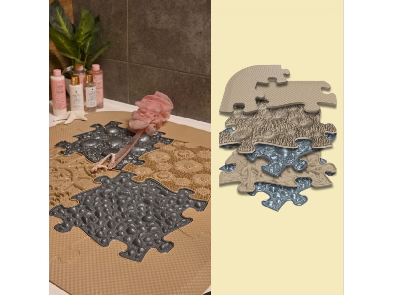 Pajuskite atpalaiduojančią palaimą ir pasirūpinkite savo sveikata su „Woopie“ prekės ženklo rekomenduojamu sensorinių kilimėlių rinkiniu. Sukurkite asmeninę SPA erdvę tiesiog savo namuose! Kilimėlį galite pasitiesti duše ir mėgautis atpalaiduojančiu pėdų masažu. Vakare masažas nuramins pavargusias ir patinusias kojas, o ryte suteiks energijos ir žvalumo visai dienai. Taip pat, kilimėlį galima patogiai išdėstyti vonios kambaryje prie veidrodžio ir, pavyzdžiui, džiovinant plaukus, stimuliuoti pėdose esančius receptorius. Tai puiki priemonė ne tik atsipalaidavimui, bet ir plokščiapėdystės prevencijai, tinkanti tiek vaikams, tiek suaugusiems, mėgstantiems vaikščioti basomis.
