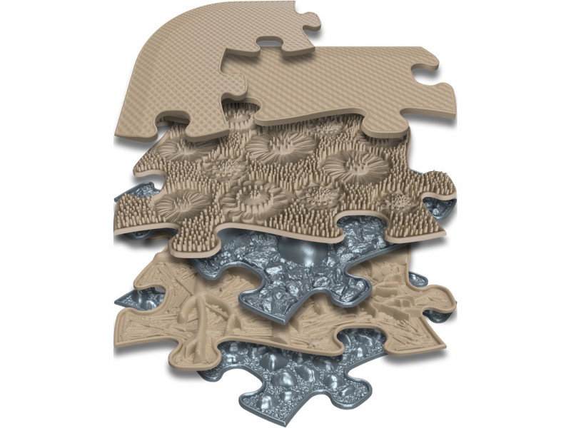 - 4 x kilimėliai: minkšta smėlio spalvos pieva, kietos smėlio spalvos šaknys, kieti pilki dideli akmenys, kieti pilki maži akmenukai;