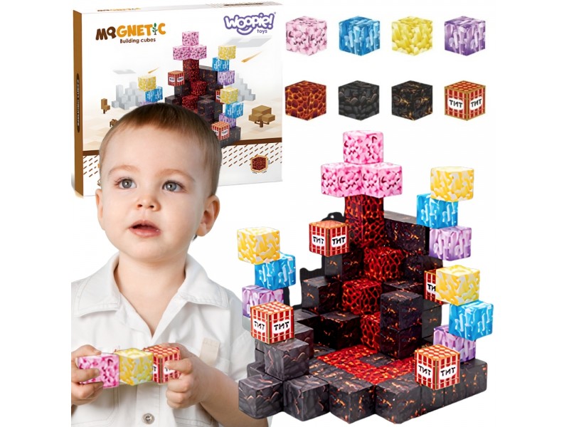 Atraskite neribotą kūrybiškumo pasaulį su Woopie magnetinėmis kaladėlėmis-kubeliais! Šis išskirtinis konstruktorius, įkvėptas populiariojo „Mine Craft“ žaidimo, yra sukurtas tam, kad įkvėptų, lavintų ir suteiktų daugybę džiaugsmo. Rinkinį sudaro 74 spalvingi kubeliai su įvairiais raštais, kurie lengvai jungiasi tarpusavyje dėl viduje esančių magnetų. Tai leidžia vaikams paprastai ir tvirtai statyti įvairiausius statinius, transporto priemones ar kurti savo fantazijos pasaulio herojus.