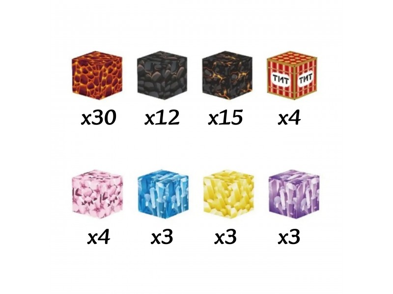 - Rinkinyje yra 74 skirtingų spalvų ir raštų magnetiniai kubeliai.