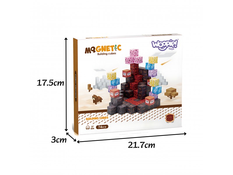 Woopie magnetinės kaladėlės kubeliai Mine Craft stiliaus, 74 dalys