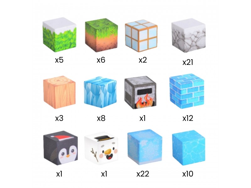 - Rinkinį sudaro 76 magnetinės kaladėlės žiemos tema.
