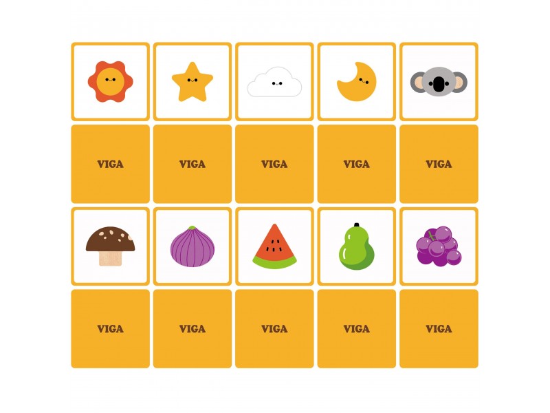 - 20 derinimo ir spėliojimo žaidimo kortelių.