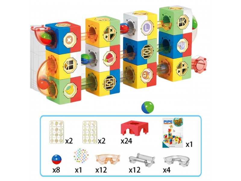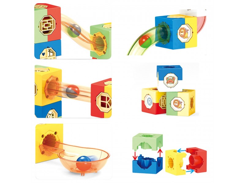 - Kaladėles ir trasas galima jungti bet kokiu būdu, sukuriant neribotą skaičių labirintų konfigūracijų.