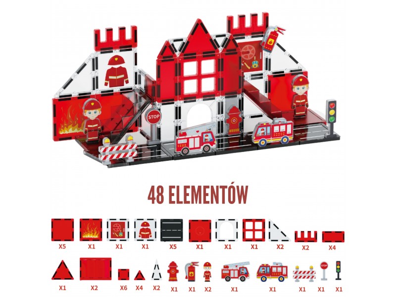 - 48 įvairios magnetinės detalės, įskaitant gaisrinės tematikos elementus.