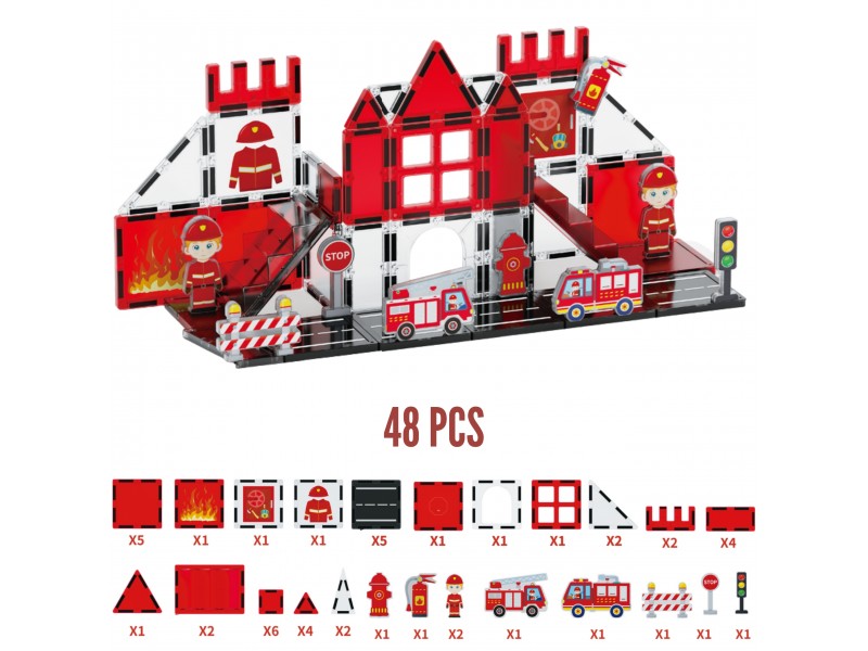 Magnetinės kaladėlės | Gaisrinės rinkinys 48 vnt. | WOOPIE 55013