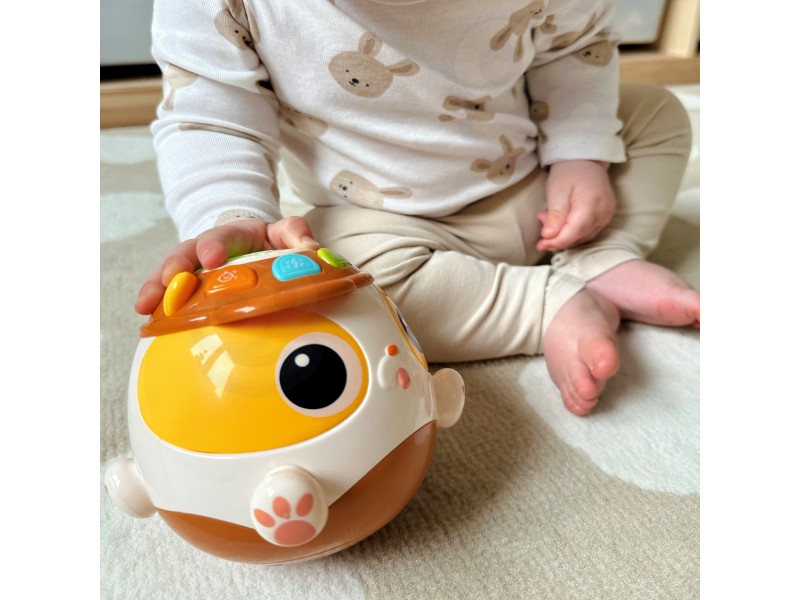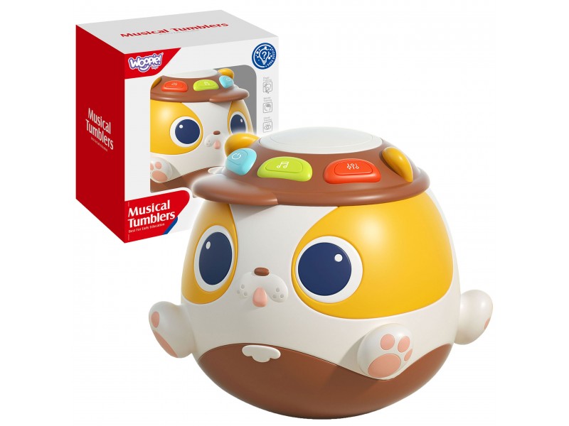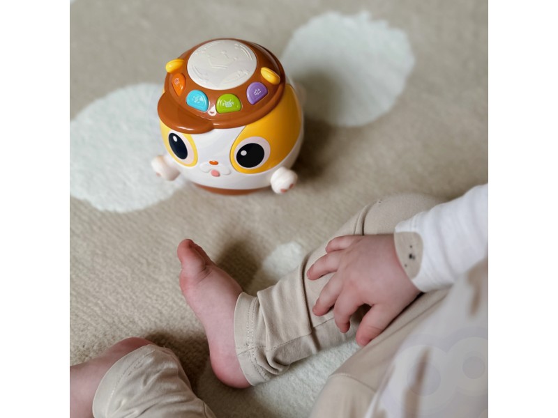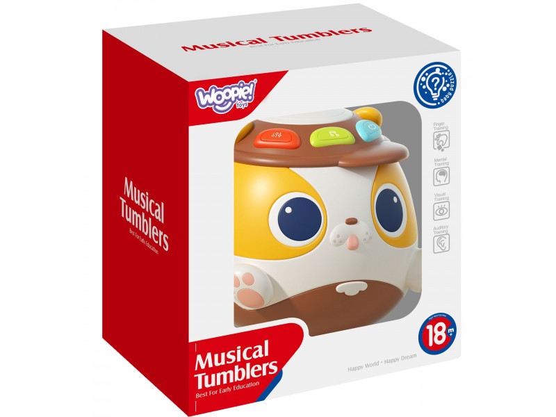 Muzikinis kamuolys-šuniukas yra interaktyvus prekės ženklo WOOPIE žaislas, sukurtas suteikti džiaugsmą ir lavinti mažylius. Šis grojantis kamuolys turi specialius mygtukus, kuriuos paspaudus aktyvuojami garsai, stimuliuojantys klausos pojūtį. Muzikinis šuniukas idealiai tinka vaikams nuo 18 mėnesių amžiaus. Jis pagamintas iš saugaus, aukštos kokybės plastiko ir pasižymi šviesos efektais, kurie skatina regos vystymąsi. Tai puikus pasirinkimas norint lavinti vaikų motorinius įgūdžius per žaidimą.