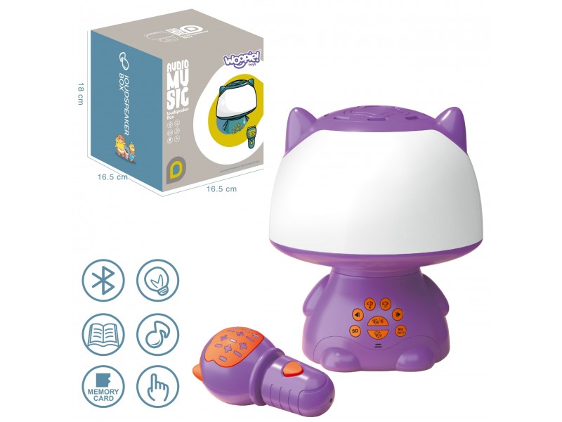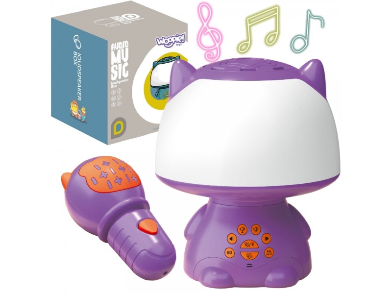 Woopie prekės ženklo RGB lempa su įmontuotu garsiakalbiu pavers bet kurį kambarį tikra muzikine scena! Interaktyvus kačiuko formos garsiakalbis su belaidžiu mikrofonu leidžia vaikams dainuoti, klausytis mėgstamų dainų ir mėgautis spalvotu apšvietimu. Pažangi stereo 360° garso sistema leidžia patogiai klausytis muzikos bet kurioje padėtyje. Intuityvus valdymas, žaismingas dizainas ir daugybė funkcijų užtikrins valandų valandas trunkančią puikią pramogą.